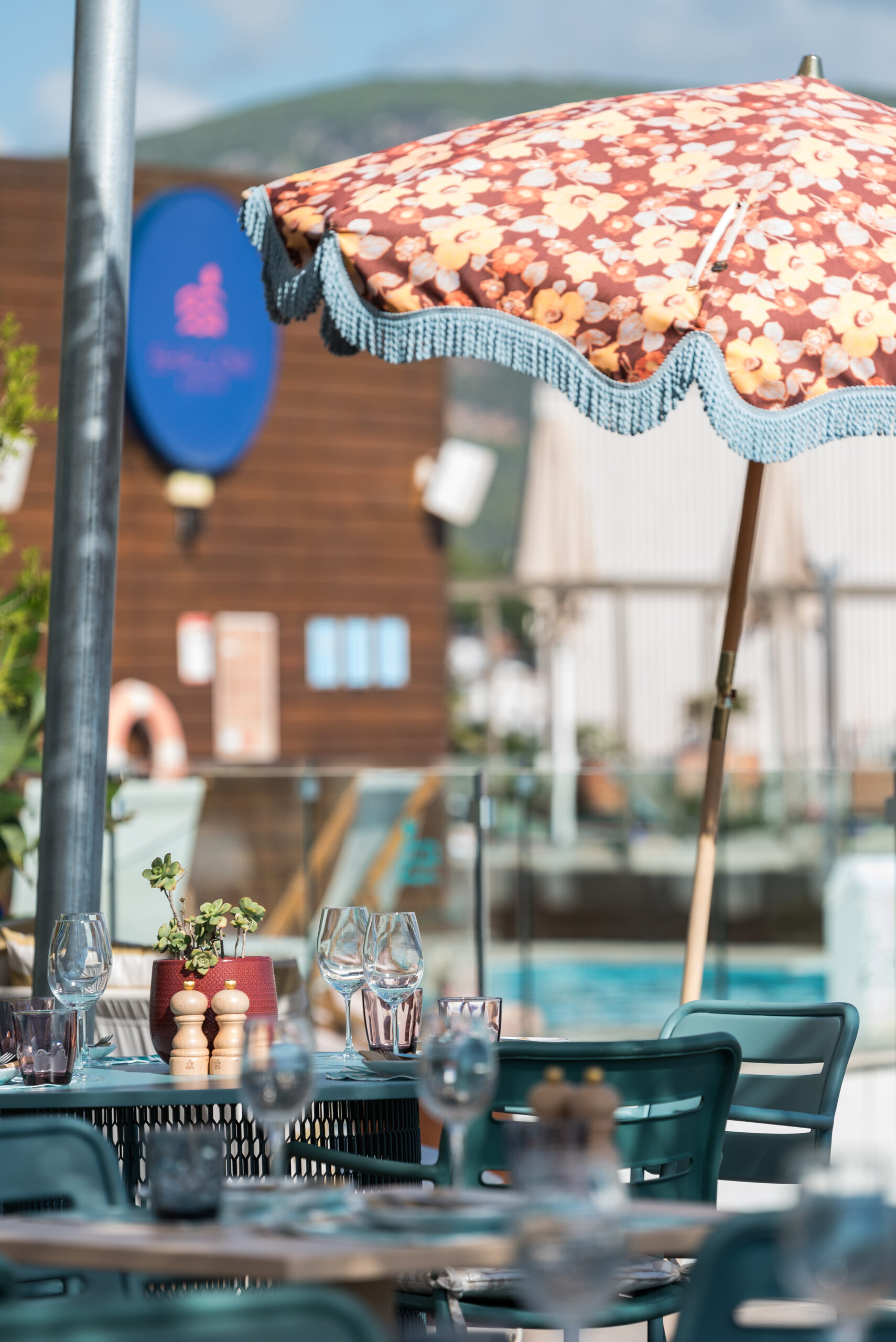 El espacio se conforma a partir de una distribución que se abre hacia al mar, tratando de que el usurario final que lo habita pueda disfrutar de las maravillosas vistas al mar. Una bancada central se convierte en el eje central del espacio, la cual divide la terraza en 2 zonas, creando una circulación alrededor de la misma. Con ello, no sólo se ha pensado en la estética del restaurante sino también en la funcionalidad y operativa de los espacios.